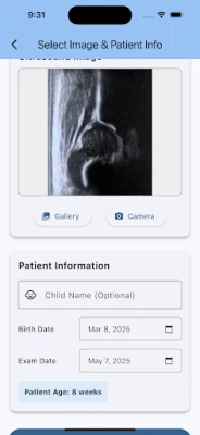 Оптимизирайте прегледите за тазобедрена дисплазия при новородени с HipAngle Pro – иновативен инструмент, създаден да преобрази начина, по който измервате ъглите на Graf. Просто качете ултразвуково изображение на бебешката тазобедрена става или направете снимка на екрана на ултразвука. Само с три докосвания на ключови точки, HipAngle Pro незабавно изчертава основните и покривните линии, изчислявайки алфа (α) и бета (β) ъглите в реално време. Прецизните стойности се актуализират динамично с всяка корекция, осигурявайки безупречна точност и елиминирайки нуждата от ръчни измервания. Получавайте обективни резултати за секунди, всеки път.