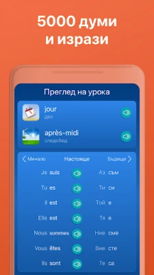 Изживейте кристално чисто аудио, записано от професионални говорители, чийто френски език е майчин, гарантирайки перфектно произношение от самото начало. Усъвършенстваната система за разпознаване на речта на Mondly не просто слуша – тя разбира. Получавате обратна връзка само когато артикулацията ви е ясна и правилна, което гради увереност и точност. Вместо да наизустявате, ще се научите да говорите френски чрез полезни фрази за ежедневни ситуации, разпределени в кратки, тематични уроци. Разширете речника си стъпка по стъпка, следете напредъка си чрез интелигентни доклади и дори се състезавайте с приятели в глобалната класация на Mondly. Приложението се адаптира към вашия стил на учене, превръщайки се във ваш персонализиран гид, който ще ви помогне да овладеете до 5000 основни френски думи и фрази.