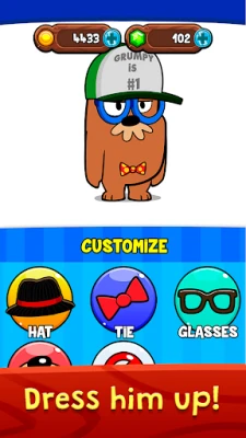 Не пропускайте да изразите своя уникален стил, като преобразявате визията на Mister Grumpy. Пробвайте най-щурите шапки, вратовръзки и всякакви други аксесоари, които ще го накарат да изглежда едновременно абсурдно и ядосано. А ако искате да видите истинския му гняв, развихрете въображението си с декорацията на дома му! Пренаредете всяка стая, променете интериора му по начин, който той категорично ще мрази. В My Grumpy всяко действие, което обикновено би било "лошо", тук носи весели награди.